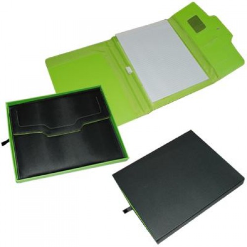 A4 folder with notepad, pen loop compartment and namecard slots.