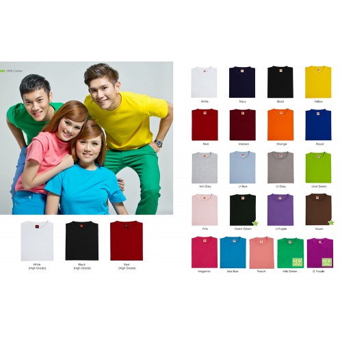2XS-3XL (White & Black) ; XS-3XL (Colours)